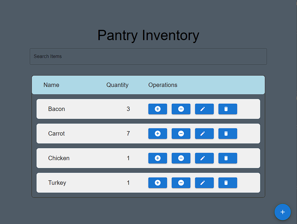 Pantry Tracker With Search, Edit, Delete, and Increment Features